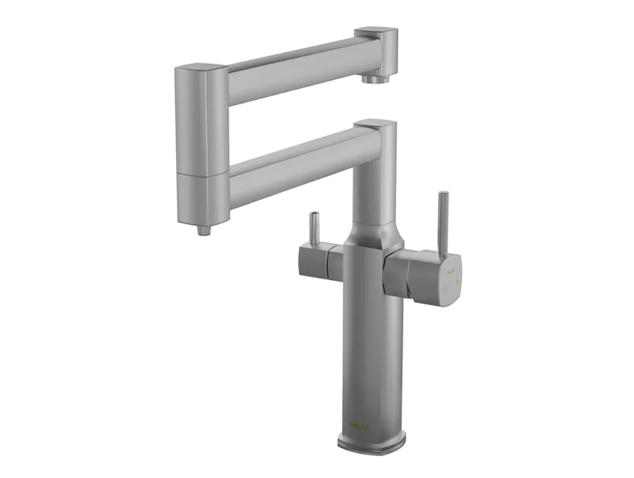 - طراحی دومنظوره (آب شهری و تصفیه): دیگر نیازی به نصب شیر آب تصفیه جداگانه نیست! این شیر هوشمندانه، امکان دسترسی به آب شهری و آب تصفیهشده را در یک جا فراهم میکند و فضای روی سینک شما را آزاد نگه میدارد.