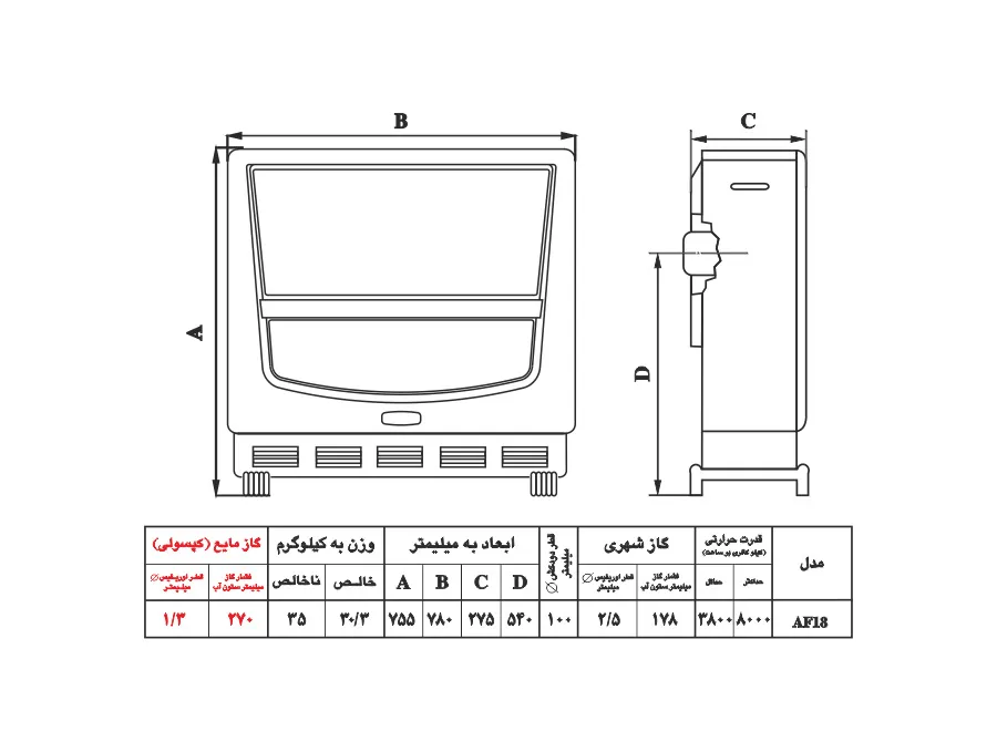 عمق 275mm ,عرض 780mm ,ارتفاع 755mm |