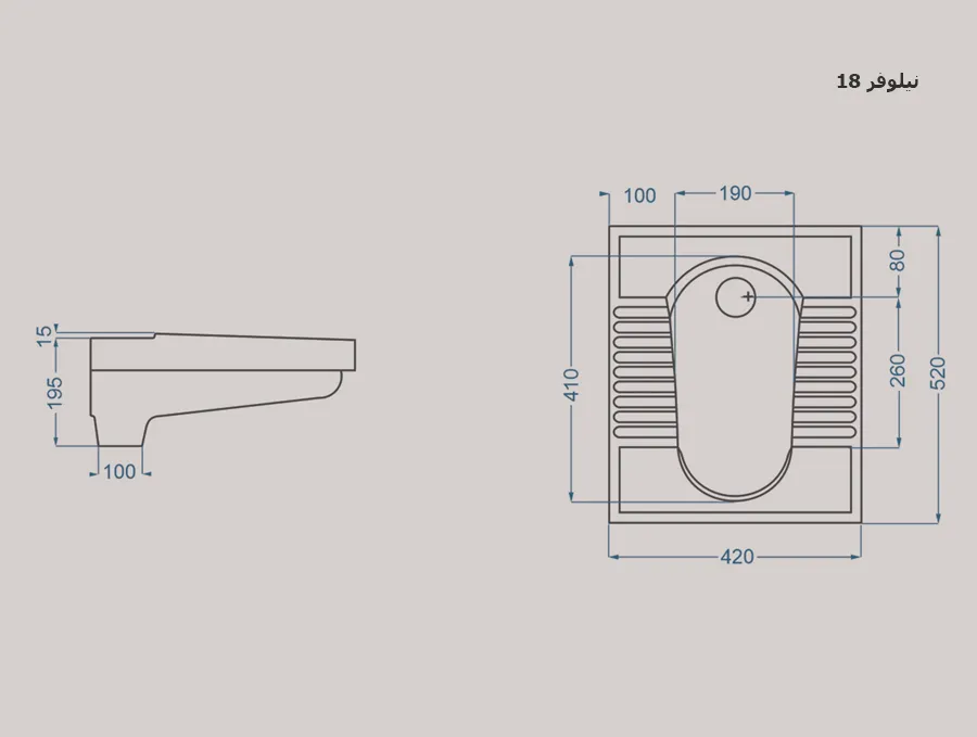 نیلوفر 22 : 545 × 465 × 220 ,نیلوفر 18 : 520 × 420 × 195 ,نیلوفر 26 : 545 × 465 × 250 |