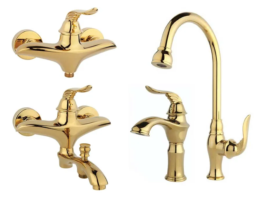 این ست شیرآلات شامل شیر ظرفشویی، شیر روشویی، شیر توالت و شیر حمام میباشد |